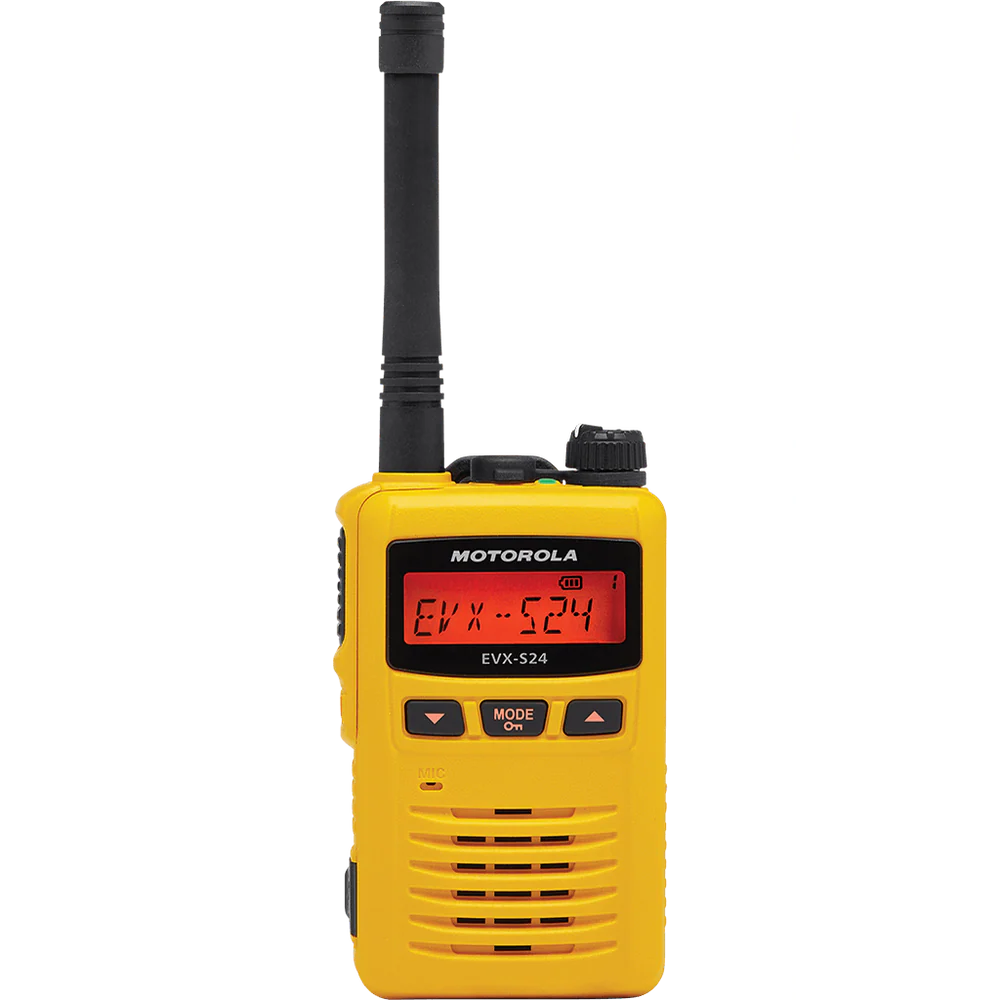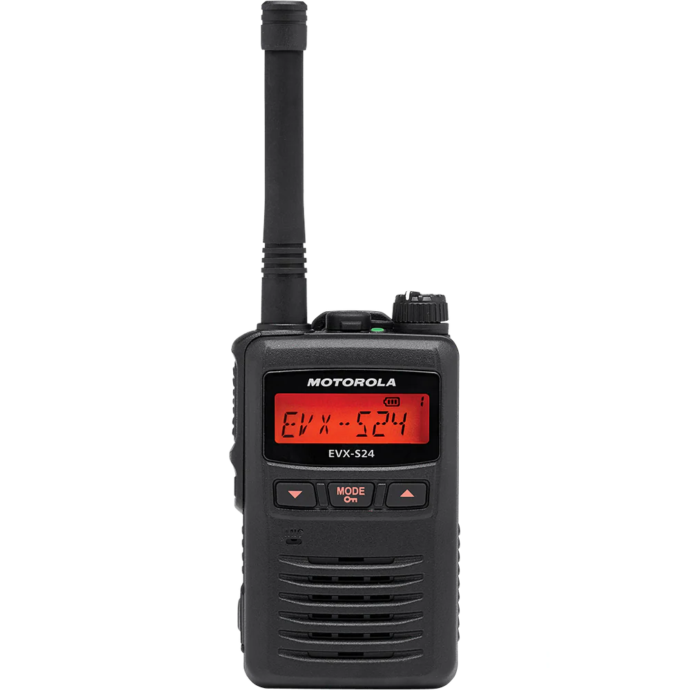 The Motorola EVX-S24 is a powerful yet compact two-way radio built for professionals who require reliable communication in tough environments. Ideal for industries such as hospitality, retail, education, and small businesses, the EVX-S24 offers flexibility, durability, and advanced communication features in a lightweight design.