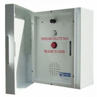 The attractive A1 Call Box combines a unique design with rugged durability. It’s field programmable to allow voice messages to be easily changed for special events. This solar-powered Call Box mounts on a wall, PVC or aluminum stanchion. The aluminum enclosure has a white powder-coating, is .090 inches thick and measures 13”H x 9.5”W x 6.5”D. Perfect for indoor and outdoor use, this Call Box provides protection against dust and falling rain. It includes an antenna and set of small reflective decals.